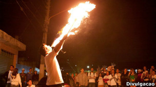 Evangélicos usam pirofagia nas ruas de São Paulo para chamar atenção de foliões