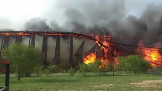 Uma ponte de linha férrea pegou fogo e acabou desabando no Estado americano do Texas.