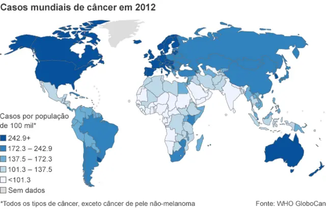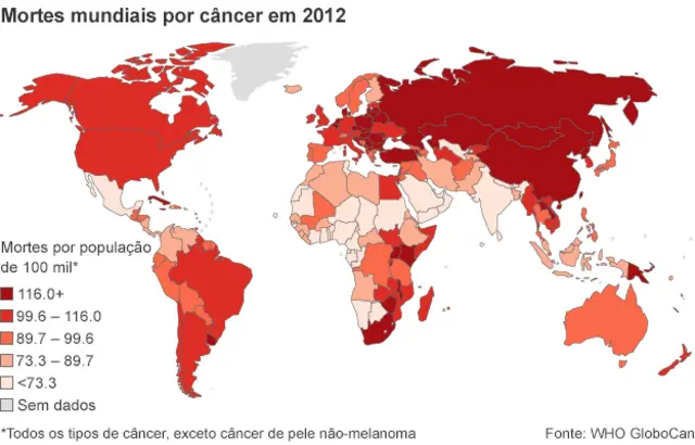 Para Chris Wild, diretor da agência internacional da OMS para a pesquisa sobre o câncer, disse que o "fardo global do câncer está se tornando mais pesado e mais evidente, principalmente devido ao envelhecimento e crescimento da população".