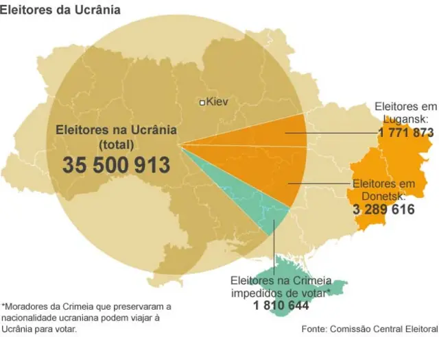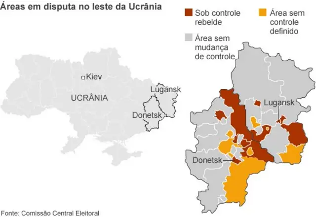 O governo da Ucrânia não está poupando esforços para que a eleição se materialize. No entanto, já admitiu que talvez não seja possível realizar a votação nos territórios da região leste controlados por grupos partidários da Rússia.