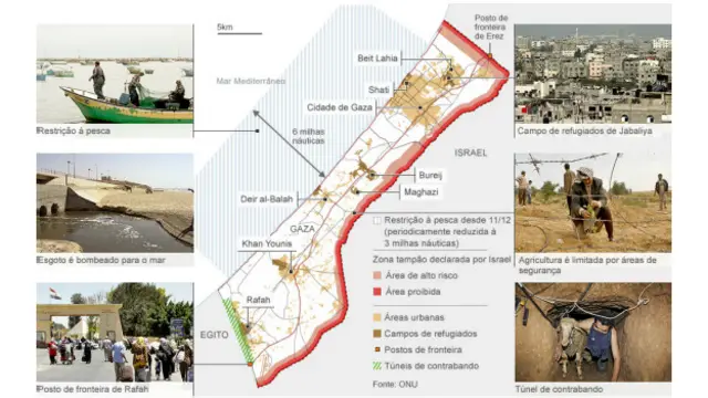 Forças navais israelenses frequentemente abrem fogo contra barcos de pesca palestinos que se aproximam ou que excedem o limite. A ONU diz que, se o limite for suspenso, a pesca poderá fornecer emprego e fonte barata de proteína para a população de Gaza.