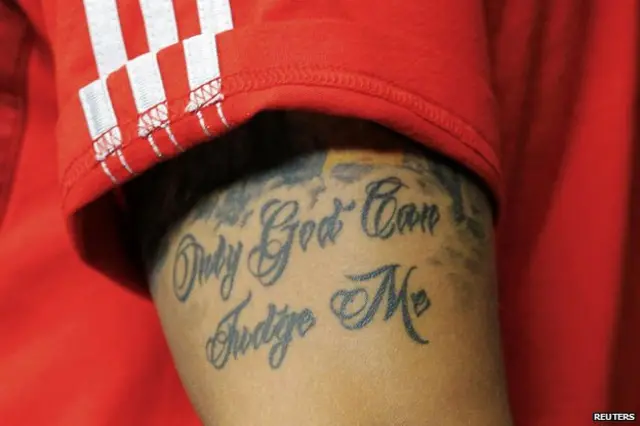 Ele tem o logotipo do Super-Homem, dragões e um crucifixo em sua coleção de tatuagens.