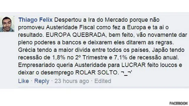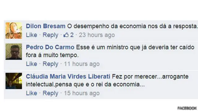 Pelo nosso <link type="page"><caption> Facebook</caption><url href="https://www.facebook.com/bbcbrasil/photos/a.305083412815.158425.303522857815/10152327107667816/?type=1" platform="highweb"/></link>, leitores fizeram tanto elogios como críticas pesadas ao ministro da Economia. E você, qual sua opinião? <link type="page"><caption> Participe da discussão!</caption><url href="https://www.facebook.com/bbcbrasil/photos/a.305083412815.158425.303522857815/10152327107667816/?type=1" platform="highweb"/></link>