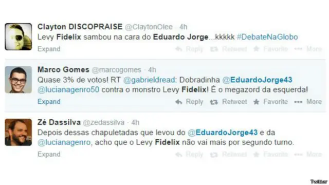 O auge do confronto, segundo o Facebook, superou impressionantes 100 comentários por segundo na rede social. No Twitter, a situação não foi diferente e a hashtag #calaabocalevy foi um dos dez tópicos mais comentados pela audiência brasileira.