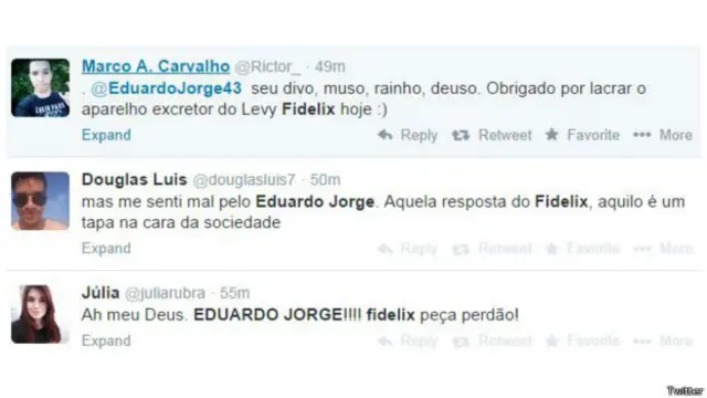 "Levy deu uma surra no Jorge e Luciana", disse o leitor Vladimir Gomes Ferreira. "Certíssimo! Cada um tem o direito de se expressar. Doa quem doer", escreveu a internauta Rafaela Lira.