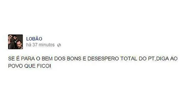 "Dilma está reeleita, grande tragédia para o Brasil. Agora estamos mais fortes, mais articulados e mais numerosos. Nasce uma verdadeira oposição no Brasil e ninguém arredará pé daqui. Esse País também é nosso e ficaremos firmes e fortes para lutar por ele. Vamos em frente", completou o músico.