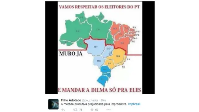 Os internautas se referiam à vitória da petista nos dois estados do Sudeste. Além de Minas e Rio, Dilma Rousseff venceu em Alagoas, Bahia, Ceará, Maranhão, Paraiba, Pernambuco, Piaui, Rio Grande do Norte, Sergipe, Amazonas, Amapá, Paraíba, Tocantins, Minas Gerais e Rio de Janeiro.