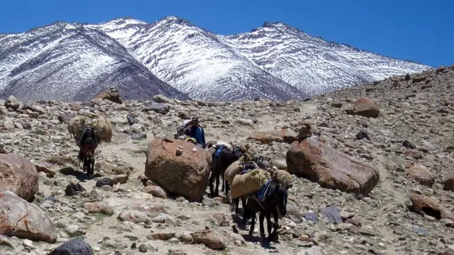 A região é repleta de trilhas para quem quiser caminhar, mas poucas aceitam carros. Assim, o meio de transporte mais valioso para cargas são as mulas e os cavalos. Estes cavalos trazem mantimentos importantes para vilarejos que ficam a 15 quilômetros da capital de Ladakh, Leh.