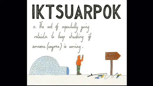 Um substantivo na língua dos esquimós do Ártico, iktsuarpok é um sentimento "entre a paciência e a ansiedade". O termo resume "aquele sentimento que faz uma pessoa sair e entrar, sair e entrar, para ver se alguém está chegando".