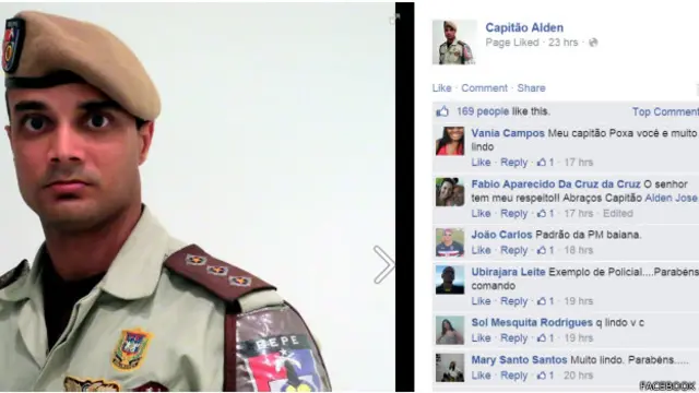 Não são só as "traduções" das tatuagens que garantem sucesso ao Capitão Alden. Mensagens como "Vc é muito gato. Com todo respeito. Mas se faltar com o respeito vc me prende?" e "Tá lindo, Capitão magia" são comuns nas fotos pessoais publicadas pelo PM <link type="page"><caption> em sua página</caption><url href="https://www.facebook.com/CapitaoAlden" platform="highweb"/></link>.