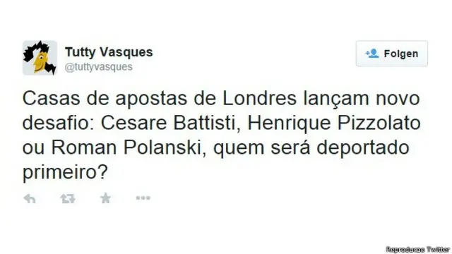 E o irônico colunista Tutty Vasques se pergunta de modo jocoso quem vai ser deportado primeiro: Cesare Battisti, Henrique Pizzolato ou Roman Polanski?