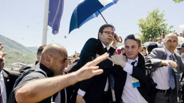 O primeiro-ministro da Sérvia, Aleksandar Vucic, foi atacado por uma multidão durante uma cerimônia para marcar o 20º aniversário do genocídio de Srebrenica na Bósnia-Herzegovina.