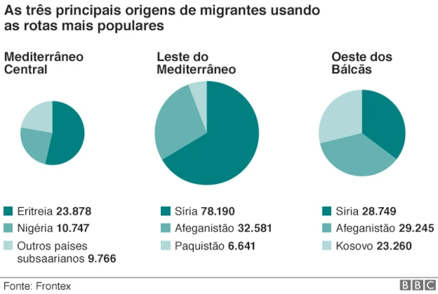 Segundo a Frontex, agência que controla as fronteiras externas da União Europeia, o maior grupo de imigrantes é de sírios, que fogem da violenta guerra civil em curso no país.