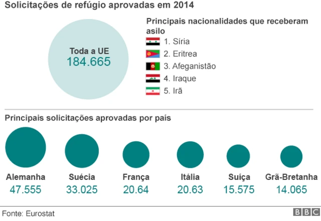 Apesar do grande número de pessoas pedindo asilo em outros países, a quantidade de pessoas que são acolhidas por eles é bem menor. Em 2014, países da União Europeia ofereceram asilo a 184.665 refugiados.