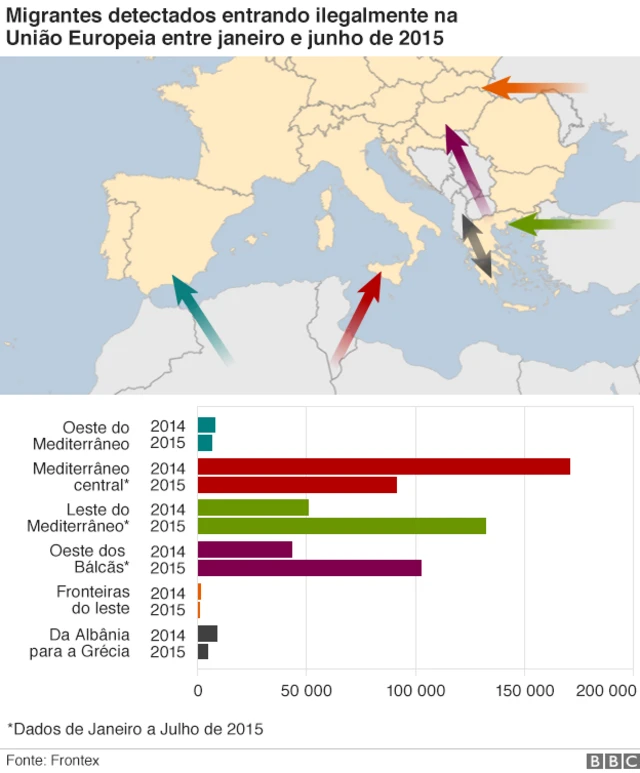 A força externa de fronteira europeia, Frontex, monitora as diferentes rotas de imigração e contabiliza as pessoas que chegam às fronteiras do continente.