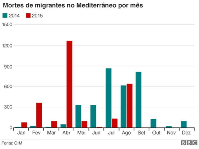 O pior mês do ano em termos de números de mortos, porém, foi abril, quando um barco carregando 800 imigrantes virou no mar da Líbia. O fato de ele transportar muito mais pessoas do que a capacidade permitia é uma das razões para a tragédia.