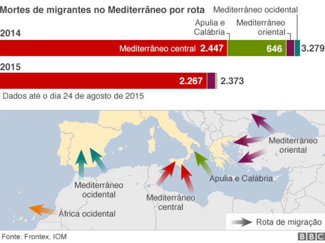 A viagem da Líbia para a Itália é mais longa e perigosa. De acordo com a IOM, mais de 2,5 mil imigrantes morreram tentando fazer essa travessia neste ano – e, no total, 2.643 pessoas morreram no Mediterrâneo em 2015.