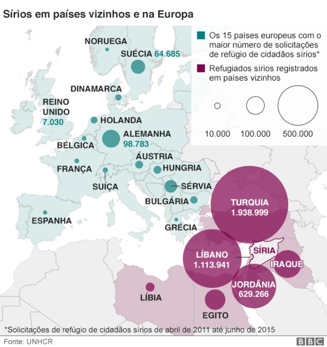 <link type="page"><caption> Leia mais: Brasil acolhe mais sírios que países na rota europeia de refugiados</caption><url href="http://www.bbc.com/portuguese/noticias/2015/09/150904_brasil_refugiados_sirios_comparacao_internacional_lgb.shtml" platform="highweb"/></link>