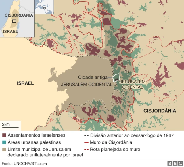 Tanto a Autoridade Palestina, que governa a Cisjordânia, quanto o grupo Hamas, em Gaza, reivindicam a parte oriental como a capital de um futuro Estado palestino, apesar de Israel tê-la ocupado em 1967.
