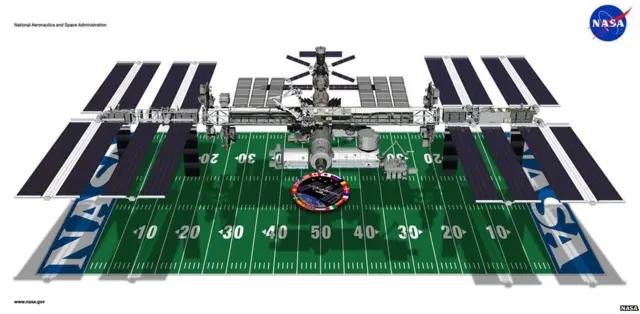 A parte em que os astronautas vivem e trabalham é do tamanho de um Boeing 747.