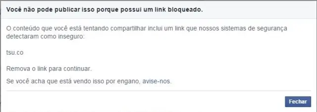 E se você tentar compartilhar o site www.tsu.co, também não vai ser possível.