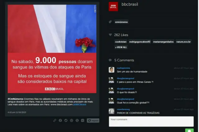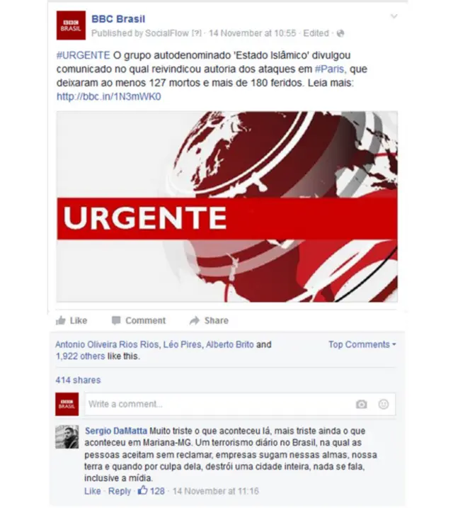 Em quase todos os posts sobre os ataques de Paris, usuários comentaram sobre a tragédia em Mariana.