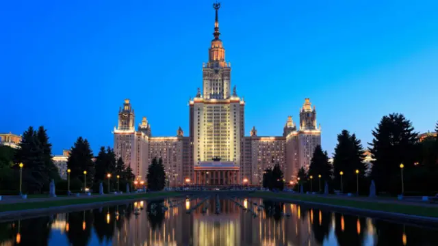 Um dos sete arranha-céus erguidos no estilo stalinista, o prédio principal da Universidade de Moscou reinou como o mais alto da Europa durante quase 40 anos, antes de ser superado pela Messeturm, de Frankfurt.