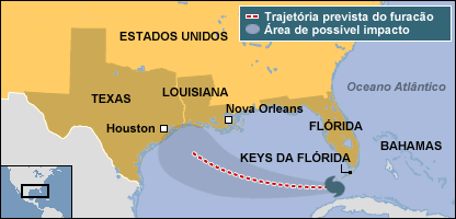 O furacão Rita, que atravessa o Golfo do México, aumentou de intensidade e chegou à categoria 5 (a mais alta da escala) com ventos de até 266 km por hora. Segundo as previsões, o furacão deve atingir até o fim da semana o Estado do Texas, mas ainda há uma possibilidade de atingir também a região da Louisiana, onde fica Nova Orleans, e o norte do México. Nesta quarta-feira, o prefeito da cidade de Houston, no Estado americano do Texas, Bill White, pediu que os moradores de áreas de baixada, vulneráveis a inundações, façam planos para deixar suas casas na manhã de quinta-feira, antes da possível chegada do furacão. Segundo White, pessoas que vivem em trailers devem abandoná-los porque eles não resistirão aos fortes ventos esperados no furacão, atualmente de cerca de 225 km/h. O presidente americano, George W. Bush, disse que os moradores de Nova Orleans e Galveston, no Texas, foram ordenados a sair de suas casas. "Eu peço aos cidadãos que ouçam cuidadosamenteas instruções das autoridades locais e estaduais e sigam-nas", disse Bush. "Nós esperamos e rezamos para que o Rita não seja uma tempestade devastadora. Mas temos que nos preparar para o pior", completou. O furacão Rita ganhou força no Golfo do México, depois de causar chuva forte no litoral de Cuba e no sul do Estado americano da Flórida. A Louisiana, bastante afetada pelo furacão Katrina, há cerca de três semanas, declarou estado de emergência. O furacão Rita é a 17ª tempestade da temporada de furacões no Atlântico, uma das mais movimentadas desde que os registros foram iniciados, em meados do século 19. A temporada se estende até o fim de novembro. Corte na produção Companhias de petróleo no sul dos Estados Unidos estão cortando a produção e evacuando suas plataformas de extração no Golfo do México por precaução antes da passagem do furacão Rita. Os temores pela passagem do novo furacão levaram a cotação do barril de petróleo a voltar a subir na quarta-feira, ultrapassando os US$ 67 no mercado asiático. O aumento do preço do barril ocorreu apesar da decisão da Opep (cartel dos exportadores de petróleo), na terça-feira, de aumentar sua produção diária em 2 milhões de barris para tentar conter as cotações. Os estragos causados pelo Katrina já haviam sido apontados como causa para que o preço do barril ultrapassasse os US$ 70 nos dias após a passagem do furacão.