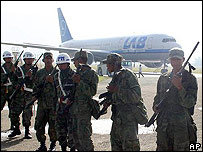 As Forças Armadas e a polícia da Bolívia assumiram o controle dos quatro principais aeroportos do país - em La Paz, Cochabamba, Tarija e Santa Cruz - depois que uma greve de aeroviários levou à suspensão de vôos. Funcionários da principal companhia aérea do país, Lloyd Aereo Boliviano (LAB), exigem a destituição do presidente da empresa, Ernesto Asbun, e sua nacionalização. O presidente Evo Morales descartou a medida, dizendo que a empresa, que é parcialmente privada, é afetada por grave corrupção. O governo disse que assumiu o controle dos aeroportos num esforço para evitar acidentes e garantir a segurança dos passageiros. Morales criticou os grevistas e, Asbun, que acusou de agravar a situação. Vários dos mais de 2 mil funcionários da LAB acusam Asbun de tentar levar a empresa à falência para formar uma nova companhia. O presidente enviou dois ministros para negociarem com os funcionários e a companha e os houve uma normalização dos vôos. |