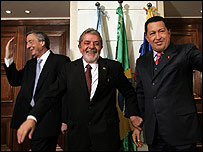 "A nacionalização é uma decisão soberana e não negociaremos nada sobre este tema", acrescentou o presidente boliviano. Ao sair de uma reunião com Morales na noite de quarta, o presidente venezuelano Hugo Chávez fez uma declaração pública de apoio ao presidente boliviano e afirmou que a Venezuela "está se movendo na mesma direção que Morales" no que diz respeito à nacionalização de recursos naturais. "Também estamos recuperando nossos recursos. O processo é longo e difícil e já nos causou um golpe de Estado," afirmou Chávez. O líder venezuelano também anunciou o aumento dos investimentos na indústria de gás boliviana, além da ampliação da cooperação técnica bilateral. |