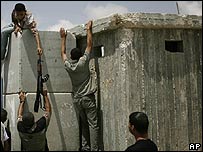 Cerca de 70 militantes palestinos abriram um buraco de seis metros com explosivos no muro que separa a Faixa de Gaza do Egito, permitindo que centenas de palestinos voltassem para as suas casas em Gaza nesta sexta-feira. Eles ficaram retidos no lado egípcio desde que a fronteira foi fechada, há mais de duas semanas, depois que dois soldados israelenses foram mortos em um ataque. Alguns palestinos passaram pela brecha levando malas, outros correram. Houve gritos animados de "Deus é o maior". Rafah é a única fronteira por terra entre a Faixa de Gaza e o mundo exterior, além daquelas compartilhadas com Israel. Retirada Em outros desdobramentos, tropas israelenses se retiraram da região central da Faixa de Gaza depois que o Exército disse que havia "completado" uma missão de dois dias lá. Forças israelenses recuaram nas primeiras horas da manhã desta sexta-feira, depois de controlar uma parte do território em torno da cidade de Khan Younis por dois dias. Dezesseis palestinos, a maioria militantes, morreram durante a operação de dois dias na região central da Faixa de Gaza. A incursão é parte de duas iniciativas que Israel diz terem o objetivo de resgatar o soldado israelense capturado Gilad Shalit, e a redução do número de ataques de mísseis por militantes paletinos contra cidades israelenses. Aviões Aviões israelenses bombardearam uma ponte e o escritório do Hamas na Faixa de Gaza. Segundo testemunhas, escavadeiras israelenses destruíram um grande segmento da estrada principal. Na quinta-feira, os Estados Unidos vetaram uma resolução da Organização das Nações Unidas (ONU) pedindo que Israel suspenda as suas operações militares na Faixa de Gaza. O embaixador dos Estados Unidos na ONU, John Bolton, disse que a resolução coloca culpa desproporcional sobre Israel pela atual crise. Dez membros do Conselho de Segurança votaram a favor de uma moção do Catar, e quatro se abstiveram. Israel rejeitou pedidos para um cessar-fogo, e disse que não vai participar de negociações para a libertação de Shalit. |