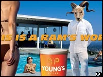 A Autoridade de Padrões na Publicidade da Grã-Bretanha (ASA, na sigla em inglês) determinou nesta quarta-feira a suspensão de dois outdoors da cervejaria Young's, por considerar que os anúncios associam "sucesso sexual e social ao consumo de álcool". Em um dos outdoors, um homem com cabeça de carneiro é o centro das atenções de um grupo de mulheres de biquíni. No outro, ele está cercado por homens vestindo ternos finos em um clube de classe alta. De acordo com uma regra instituída em outubro do ano passado, estão proibidos anúncios em que "o consumo do álcool seja a razão do sucesso de qualquer relacionamento pessoal ou evento social. Uma marca pode ser promovida como sinal, por exemplo, do bom gosto e do discernimento do bebedor". A Young's & Co. negou que tenha relacionado o ato de beber ao sucesso social ou sexual. De acordo com a cervejaria, "o uso do 'carneiro' em situações sociais é tão absurdo que o público entenderia a irrealidade da situação". Slogan No entanto, a agência reguladora da publicidade na Grã-Bretanha afirmou que o slogan "This is a Ram's World" ("Este mundo é dos carneiros", em tradução livre), dá a entender que os consumidores da Young's Bitter são personificados pelo carneiro, que, nos anúncios em questão, monopoliza as atenções das mulheres. A cervejaria alega que a cabeça de carneiro aparece no logotipo da marca há mais de 150 anos. "Esses anúncios foram criados como parte de uma campanha bem-humorada em 2004, bem antes do maior rigor nas regras sobre anúncio de álcool", afirmou o porta-voz da cervejaria, Michael Hardman. Em outro outdoor da Young's Bitter, o homem com cabeça de carneiro aparece vestido de terno e cercado de homens bens vestidos em um "clube de cavalheiros" britânico. Na decisão da ASA, a agência determina que a Young's não associe mais o seu produto a sucesso social ou sedução. |