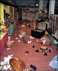 Organizadores do parque Wookey Hole Caves, na Inglaterra estão literalmente juntando os pedaços de uma exposição de ursinhos de pelúcia raros, depois de um inexplicável ataque do cão dobermann que estava lá para protegê-los. Entre os mimos destroçados estava um urso da clássica marca alemã Steiff, que pertenceu a Elvis Presley e valia 40 mil libras – cerca de R$ 160 mil. Mabel, como se chamava o ursinho que acabou decapitado, foi feito na Alemanha em 1909 e comprado por um aristocrata britânico em um leilão em Memphis, no Tennessee. O bibelô do Rei do Rock foi a vítima mais ilustre do cão Barney, que deixou outras 20 mil libras – cerca de R$ 80 mil – em prejuízos causados a outros bonecos. Todos os objetos expostos valiam cerca de R$ 2 milhões, segundo o parque. “Cabeças arrancadas, braços, pernas aqui e acolá, foi de fato uma carnificina”, confirmou à BBC Daniel Medley, gerente do parque temático, em Somerset. “Cerca de cem ursos de pelúcia foram atingidos neste ataque violento, alguns com mordidas leves, outros com danos bem graves.”