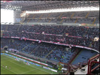 Ronaldo teve 11 vezes a bola nos pés, deu quatro passes certos e dois errados e fez dois chutes ao gol – um deles, uma bomba que foi espalmada pelo goleiro -, além de mandar uma bola para fora. Aprovado, disseram os torcedores com os quais a BBC Brasil falou no fim do jogo. “Será mais amado aqui do que em Madri”, disse um italiano. “Eu achei ótimo seu desempenho”, disse um outro. Outro que elogiou Ronaldo em sua estréia no Milan foi o dono do clube, Silvio Berlusconi. “Foi muito bem, veloz. Um fenômeno”, disse. Qualidades Carlo Ancelotti, o treinador, disse que o brasileiro “mostrou muitas qualidades, como a de se livrar da marcação e chutar ao gol” nos 30 minutos em campo. “Talvez no próximo (jogo) jogará mais. Pedi a Ronaldo que fizesse o que sabia fazer e gostei das respostas em campo.” A febre Ronaldo em Milão parece estar apenas no começo. Do lado de fora do San Siro, barraquinhas vendiam a faixa com o nome do atacante e a camisa dele, com o número 99. O preço dos artigos, uma pechincha: o equivalente a R$ 15 reais a faixa e R$ 45 a camiseta. “Não estamos vendendo muito, mas isso é o reflexo do pouco número de torcedores (no estádio) e não uma demonstração de falta de confiança ao jogador”, disse o vendedor. Na semana passada, jogos de futebol no país foram suspensos depois de um incidente em que um policial morreu, após um jogo na Sicília. Muitos estádios no país permanecem fechados até que sejam feitas alterações para aumentar a segurança. No caso do San Siro, apenas proprietários de cadeiras cativas foram autorizados a entrar para ver a estréia de Ronaldo. | NOTÍCIAS RELACIONADAS Ronaldo se apresenta no Milan e diz que não entende críticas02 fevereiro, 2007 | BBC Report 'Milan já comprou Ronaldo', diz jornal italiano25 janeiro, 2007 | BBC Report | |||||||||||||||||||||||||||||||||||||||||||||||||||||||||||||||||||||||||||||||||||||||||||||||||||||||||||||