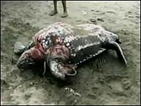 Três pescadores que mataram uma tartaruga-gigante no Peru poderão ir para a cadeia caso sejam condenados por crime ambiental. A tartaruga-gigante, também conhecida como tartaruga-de-couro, é considerada uma espécie sob risco de extinção. Depois de 14 horas, o animal acabou morrendo em função dos ferimentos. |