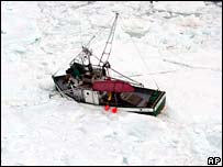 A Guarda Costeira do Canadá está tentando resgatar os ocupantes de cerca de cem barcos com caçadores de focas encalhados no gelo na costa leste do país. São quase 500 pessoas, que enfrentam as piores condições meteorológicas dos últimos 20 anos. Alguns barcos estão ficando sem alimentos e sem combustível. As placas de gelo são grandes e rígidas e podem até danificar o casco de alguns barcos, de acordo com Brian Penney, integrante da Guarda Costeira. A caça de focas é considerada por ativistas como cruel e desnecessária. As autoridades no Canadá dizem que dois terços da cota de focas já foram preenchidos neste ano. A cota total é de 270 mil animais. |