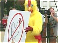 Um homem foi condenado a se vestir de galinha e sair na rua fazendo propaganda contra um famoso bordel americano. Daniel Chapdelaine foi um de três réus condenados pelo juiz Michael Cicconetti por abordar prostitutas na rua, o que é ilegal no Estado de Ohio. A fantasia incluiu um cartaz que dizia que não se aceita "galinheiro" na cidade, numa referência a um bordel famoso no país, no Estado de Nevada, e que é conhecido como "Granja". Esta não é a primeira sentença pouco convencional de Cicconetti. Uma mulher que abandonou gatinhos foi obrigada a passar a noite sozinha numa mata sem água e sem comida, e um homem que chamou um policial de porco teve que ficar de pé em uma esquina ao lado de um porco, segurando um cartaz que dizia: "Este não é um policial." |