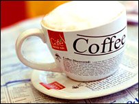 NOTÍCIAS RELACIONADAS Café e exercícios 'podem proteger a pele do sol'31 julho, 2007 | BBC Report Café em moderação não afeta gestação, diz estudo26 janeiro, 2007 | BBC Report Chá ajuda a reduzir hormônio do estresse, diz estudo05 outubro, 2006 | BBC Report Mulher processa Starbucks ao ter 'vale-café' recusado14 setembro, 2006 | BBC Report | |||||||||||||||||||||||||||||||||||||||||||||||||||||||||||||||||||||||||||||||||||||||||||||||||||||||||||||