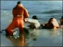 O resgate dramático de um menino que caiu em um riacho congelado foi capturado por uma câmera de telefone na província argentina de Rio Grande. Gustavo Quintana, de oito anos, estava assistindo com a familia a uma corrida de carros ao longo de um riacho, quando avançou muito para dentro das águas e o gelo quebrou. O menino caiu dentro da água, e a correnteza o puxou para baixo do gelo. Policiais que estavam presentes na corrida de carros foram ao resgate, quebrando o gelo para retirar o menino. Quando saiu, Gustavo estava inconsciente e imediatamente recebeu respiração boca-a-boca e foi levado para o hospital, onde sua condição de saúde é estável. |