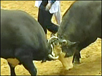 O campeonato anual de touradas de Okinawa atrai milhares de pessoas. Mas, diferentemente das famosas touradas espanholas, a versão japonesa dispensa o toureiro. Em Okinawa, é touro contra touro. O animal que mantiver sua posição ganha. Geralmente o adversário acaba desistindo. Os embates costumam durar cerca de 20 minutos. Acredita-se que a tradição, de séculos, tenha surgido como um entretenimento para agricultores depois de concluído o plantio. O presidente da Associação de Touradas de Okinawa, Masakazu Kochi, defende que a tourada local é uma luta justa e pacífica. |