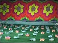 | | | Cerca de 20 mil pessoas formam o mosaico em em lado do estádio |