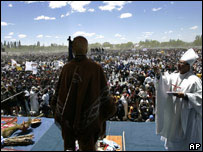 A beatificação de Namuncura na pequena Chimpay, e não em Roma, faz parte da estratégia do papa Bento 16 de reaproximar a Igreja Católica de fiéis em todo o mundo. Em maio deste ano, o próprio pontífice canonizou o brasileiro Frei Galvão em uma cerimônia para centenas de milhares de pessoas – as estimativas variam entre 700 mil e 1,2 milhão – em São Paulo. O correspondente da BBC em Buenos Aires Daniel Schweimler disse que este domingo "é o maior dia para a Igreja Católica argentina em muitos anos". | NOTÍCIAS RELACIONADAS Bispo 'aprovado pelo papa' é ordenado em Pequim21 setembro, 2007 | BBC Report Vaticano definirá Igreja Católica como 'única de Cristo'09 julho, 2007 | BBC Report Padres recusam 'promoção' e dioceses ficam sem comando no Brasil 25 maio, 2007 | BBC Report Após Frei Galvão, lista de santos brasileiros deve aumentar11 maio, 2007 | BBC Report Vaticano canonizou quase 500 santos nas últimas três décadas11 maio, 2007 | BBC Report | |||||||||||||||||||||||||||||||||||||||||||||||||||||||||||||||||||||||||||||||||||||||||||||||||||||||||||||