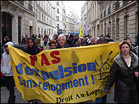 O Jeudi Noir (Quinta-feira Negra, em tradução livre) é uma espécie de ala guerrilheira do movimento, alfinetando proprietários que buscam 'algo a mais' de seus inquilinos. O grupo visita e filma apartamentos minúsculos oferecidos por valores exorbitantes. Les Enfants de Don Quichotte (Os Filhos de Don Quixote, em tradução livre) causou grande constrangimento ao governo francês com uma "dormida ao relento" em massa no ano passado, quando centenas de ativistas e sem-teto passaram a noite em barracas instaladas ao longo do rio Sena, em Paris. O Droit au Lodgement (Direito à Moradia, em tradução livre), junto com o Jeudi Noir, ocupou um antigo banco justo em frente à velha bolsa de valores de Paris, a poucos quarteirões do Banco da França. O prédio foi rebatizado de 'Ministério da Crise Habitacional', e agora serve de sede para base e acampamento para o movimento. As ações destes grupos mantêm o tema na agenda pública. Eles sabem que isto não construirá as milhões de casas de que a França necessita, mas acreditam que, sem pressão sobre os políticos nacionais e locais, a mudança nunca virá. A ministra francesa da Habitação, Christine Boutin, reconheceu os esforços dos movimentos e disse que já começou a estudar maneiras de melhorar as condições do mercado imobiliário. |