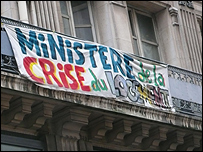 "O aluguel superava 70% do meu orçamento", conta Laura. "Vejo minhas amigas, pessoas que eu conheço, todas vivem em lugares insalubres, minúsculos. Ou negociam com proprietários que alugam os quartos e às vezes abusam delas." Crise habitacional Sexo em troca de teto é o extremo de um problema que faz vítimas entre os franceses mais vulneráveis – os jovens e pobres. O governo admite que a França enfrenta a pior crise habitacional desde o fim da 2ª Guerra Mundial. Evidentemente, preços exorbitantes de imóveis não são uma exclusividade da França. Mas certas circunstâncias deixaram o mercado imobiliário francês – especialmente o de Paris – travado entre a oferta e a demanda. Há proporcionalmente muito mais imóveis vazios em Paris que em Londres, por exemplo. Entre a bancarrota e a condição de sem-teto, pessoas vivendo em condições precárias são cada vez menos na capital britânica, e cada vez mais na capital francesa. Na Grã-Bretanha, normalmente o proprietário ocupa o imóvel. Na França, o aluguel representa um meio de vida. Protesto Em uma república que se construiu através dos protestos de rua, não surpreende que uma nova geração de movimentos voltados para a questão da moradia tenha surgido na França. Com suas manifestações, grupos como Jeudi Noir, Droit au Lodgement e Les Enfants de Don Quichotte conquistaram atenção – mas não concessões políticas, eles dizem.