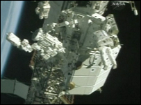 Astronautas da Estação Espacial Internacional realizaram mais uma caminhada espacial na segunda-feira. Desta vez, eles instalaram os novos "olhos" e ferramentas do robô que está sendo montado do lado de fora da estação. Essa foi a terceira caminhada dos tripulantes do ônibus espacial Endeavour, que se acoplou à estação há quase uma semana. A missão tem o objetivo de montar o robô Dextre. Na primeira caminhada espacial, Dexter ganhou braços e, agora, duas câmaras que vão servir como olhos e um cinturão de ferramentas. Os braços do robô já estão em funcionamento e têm mais de três metros de comprimento, com sete articulações cada um. O Dextre é um projeto da agência espacial canadense e custou mais de US$ 200 milhões. A idéia é que, no futuro, o robô seja capaz de trocar baterias e substituir peças da estação espacial, já que o Dextre é capaz de levantar quase 600 quilos e também de realizar trabalhos de precisão. |
