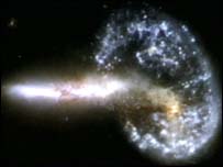 O Telescópio Espacial Hubble capturou imagens impressionantes de colisões de galáxias. Agora, uma coleção de 59 fotos é lançada para marcar o 18º aniversário do lançamento do telescópio. É o maior número de images do Hubble a serem divulgadas em conjunto. Os poderosos choques registrados pelo telescópio geram explosões que formam novas estrelas e podem até resultar em novas galáxias. |
