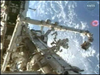 Dois astronautas deixaram a Estação Espacial Internacional (EEI) nesta terça-feira para recuperar uma haste de inspeção necessária para checar eventuais danos no ônibus espacial Discovery e preparar a instalação de um novo laboratório de pesquisa. Depois de acampar na câmara de descompressão da estação durante a noite para preparar os corpos para o ambiente exterior, o astronauta veterano Michael Fossum e seu parceiro principiante Ronald Garan flutuaram no espaço enquanto a estação navegava sobre o Sudeste Asiático. O principal objetivo da missão da Discovery, que começou no sábado passado, é entregar um laboratório japonês com valor estimado em US$ 1 bilhão, resultado de 20 anos de esforços do Japão de se tornar um ator permanente na exploração e na pesquisa humana no espaço. O laboratório é tão grande que não sobrou espaço na Discovery para a haste de inspeção, um braço robótico de 15 metros de comprimento, que permite a inspeção de eventuais danos nas asas e no bico da nave por meio de câmeras e sensores. O instrumento foi incluído no equipamento de segurança pela Nasa depois do acidente com o ônibus espacial Columbia, em 2003, causado por um estrago após o impacto da nave com destroços. A última equipe a visitar a EEI deixou a haste de inspeção armazenada temporariamente na parte externa da estação, para que os astronautas da Discovery a usassem e depois levassem o instrumento de volta para a Terra. | ||||||||||||||||||||||||||||||||||||||||||||||||||||||||||||||||||||||||||||||||||||||||||||||||||||||||||||||