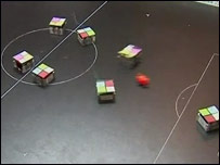 Um grupo de cientistas europeus resolveu organizar um campeonato de futebol de robôs para coincidir com a realização da Eurocopa, que está sendo disputada na Áustria e Suíça. O título da Eurocopa robótica ficou com a equipe da Eslovênia que goleou o time da Áustria por 9 a 1, na grande final. Os jogadores são pequenos cubos metálicos equipados com sensores especiais que utilizam algoritmos complexos para tentar localizar a bola, driblar os adversários e marcar o gol. Segundo os cientistas, as partidas ocorrem sem a interferência de seres humanos. Os robôs recebem a ordem de movimento por ondas radiofônicas, emitidas a partir de um computador que analisa os dados de posicionamento dos adversários e da bola, passados por uma câmera montada sobre o campo. A câmera registra a posição de cada robô-jogador 120 vezes por segundo. Segundo um dos organizadores do evento, o professor Guido Bugman, da Universidade de Plymouth, da Grã-Bretanha, o objetivo do grupo é desenvolver a tecnologia para que, em 2050, possa colocar em campo um time formado somente por robôs para enfrentar jogadores humanos. | ||||||||||||||||||||||||||||||||||||||||||||||||||||||||||||||||||||||||||||||||||||||||||||||||||||||||||||||