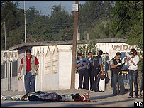 O presidente mexicano, Felipe Calderón, tem ordenado o deslocamento de milhares de soldados e policiais para as partes mais violentas do país. Só Ciudad Juárez, onde tiroteios são registrados em plena rua, já recebeu 3 mil homens do Exército e da polícia. Entretanto, por ora não existem sinais de melhora na situação. | NOTÍCIAS RELACIONADAS México lança esquadrão anti-seqüestro12 agosto, 2008 | BBC Report Texas ignora decisão de Haia e executa mexicano06 agosto, 2008 | BBC Report Comandante da polícia mexicana é preso na Califórnia02 agosto, 2008 | BBC Report | |||||||||||||||||||||||||||||||||||||||||||||||||||||||||||||||||||||||||||||||||||||||||||||||||||||||||||||