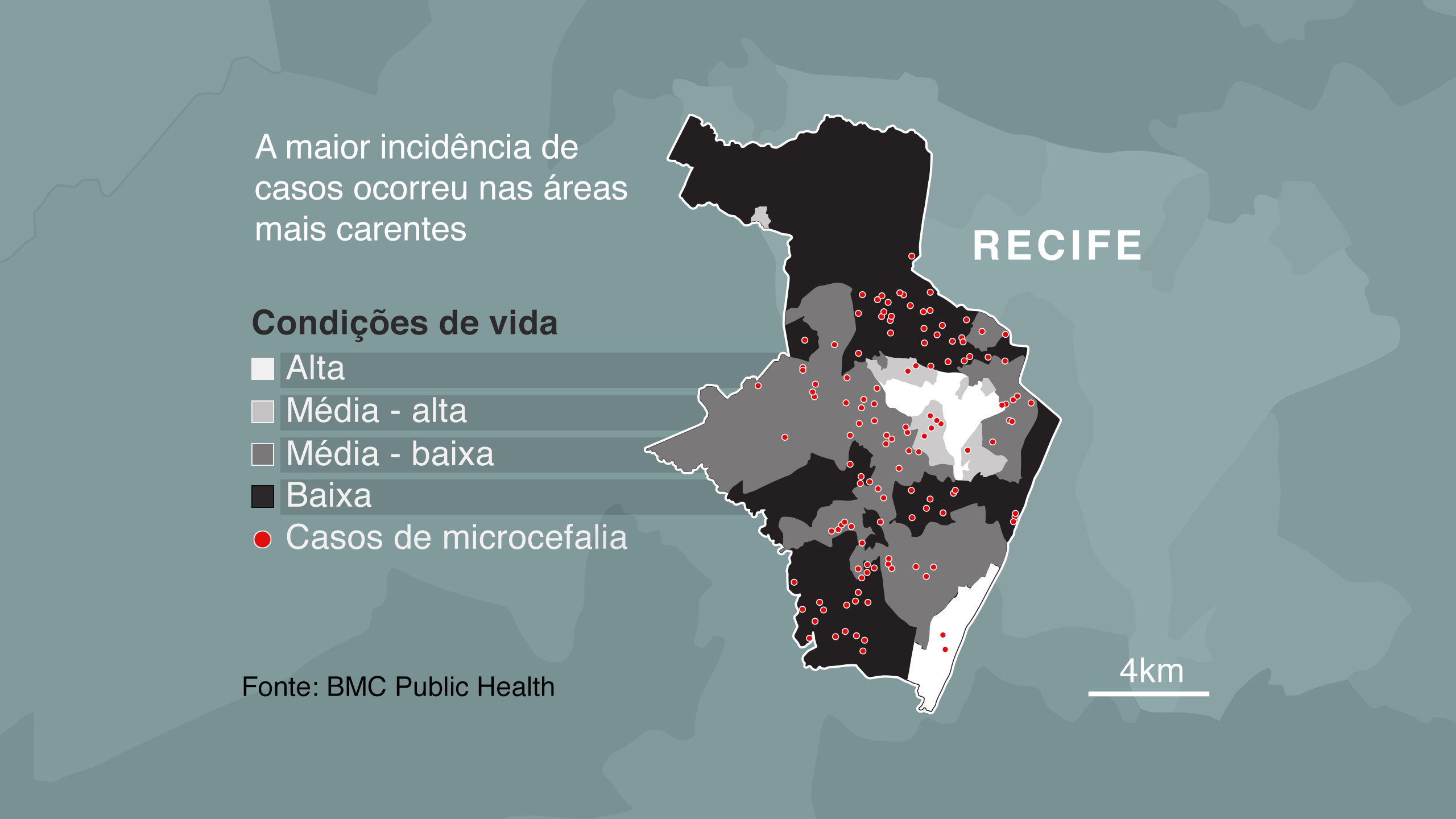 A epidemia de zika espelha a desigualdade brasileira. Um estudo sobre a distribuição das crianças com a síndrome no Recife expôs a seletividade social da doença, evidenciando o quanto populações mais pobres são mais afetadas, em áreas de maior densidade demográfica e saneamento precário.